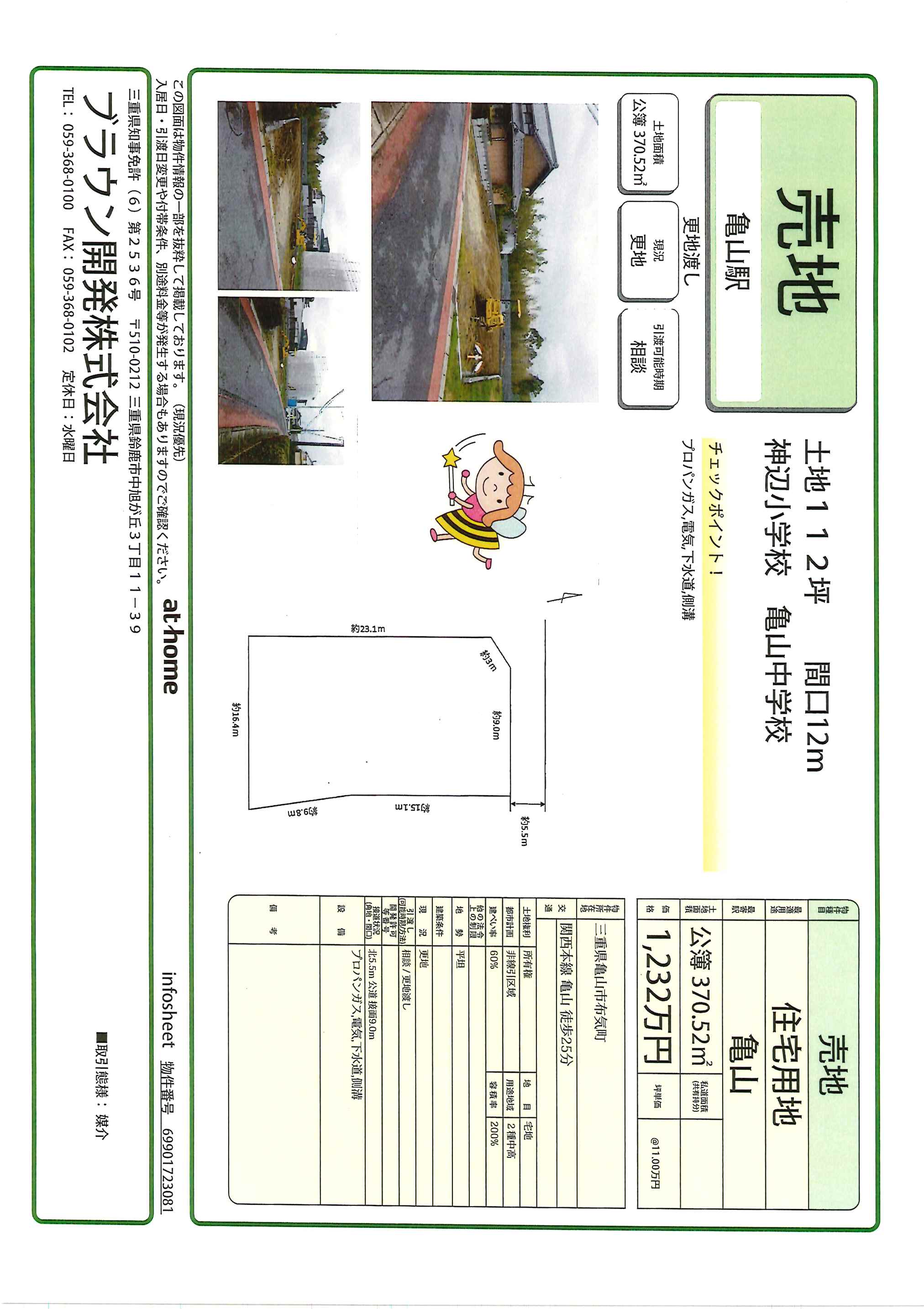 土地112坪 間口12m 神辺小学校 亀山中学校 仲介 |