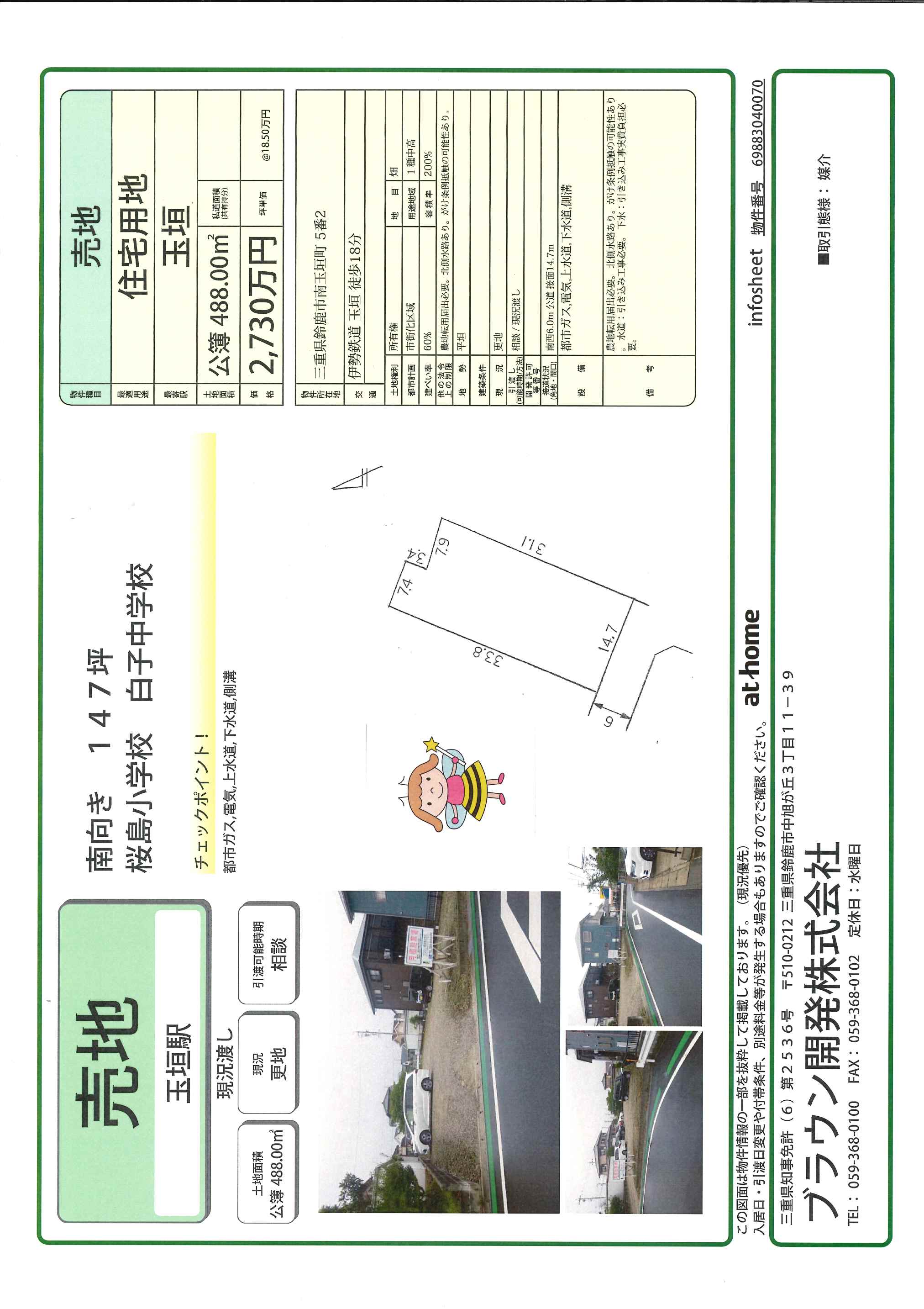 【ご成約済み】ありがとうございました。 近鉄 白子駅 徒歩20分 商業地・住宅用地最適 国道23号線まで120mの好立地 現況更地 売主 |